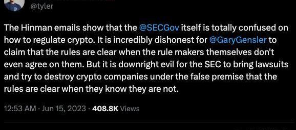 先前,Gemini聯合創始人TylerWinklevoss與CoinbaseCEOBrianArmstrong都曾對SEC過于不明確的法規表達抗議,指控其試圖在錯誤的前提及模糊的法律依循下摧毀加密公司。