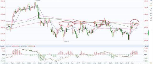 昨天分析到,上證指數在5min走勢圖中,回踩233均線,后續又繼續上漲。從今天盤面走勢來看,短線級別很強勢,繼續上漲,點位又來到3275壓力位附近,很有意思,在30min走勢圖中,今天行情就是穩定在233均線上,有8根30min的k線。今天這個收盤行情比昨天更像誘多行情。現在行情就十分簡單,如果下周一開盤,強有力突破該壓力位,那么上證指數會破新高,到時候順勢而為,但一旦突破不了,那么后期必然面臨大的級別下跌。