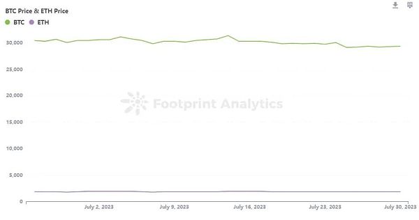 在整個 2023 年 7 月,比特幣的價值主要在 29,000 美元至 31,000 美元的范圍內波動。比特幣在 7 月 13 日達到了一年來的最高點,達到了 31,400 美元,是自前一年 7 月以來的最高值。
