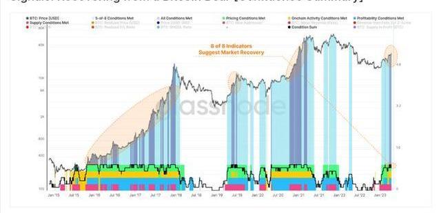 跟蹤比特幣熊市復蘇進程的8個Glassnode指標中有8個現在顯示綠色信號。