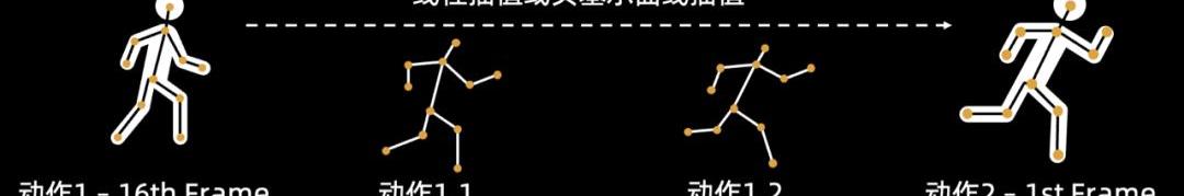 動作的串聯需要解決一個問題:動作1到動作2如何過渡銜接。這便需要用到混合動畫技術。混合動畫的基礎原理是以動作1當前狀態為起點、動作2的指定狀態為終點,計算關鍵幀的插值**。簡單的可以使用線性插值,復雜的也可以使用貝塞爾曲線插值等。關于混合動畫的知識點和方案非常多,也適用于不同的場景和需求,大家可以自行搜索,例如Unity和Unreal也都提供了很多不同的混合方案。