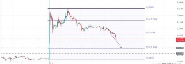 戰勝SEC后,股價在短時間內飆升了100%以上,但反彈后的影響卻極其悲觀,導致股價大幅下跌。隨著新的看跌攻擊,價格已從0.5FIB水平下跌,并似乎正在達到較低的FIB水平0.78,超過0.612FIB水平。如果多頭設法守住這些水平中的任何一個,那么人們可以期待健康反彈,否則XRP價格可能會回吐所有漲幅并達到0FIB水平,即0.468美元的初始位置。