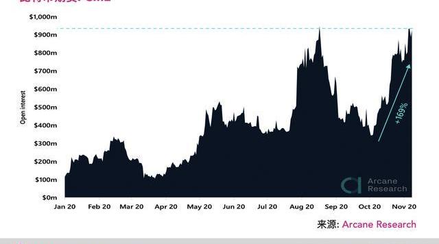 Arcane的研究人員寫道:“目前未平倉量僅處在八月最高點的下方,并且再次踏上了突破10億美元大關的道路。CME增長的背后是知名宏觀投資者在做多比特幣對沖通脹,之前是PaulTudorJones,現在是StanleyDruckenmiller。”