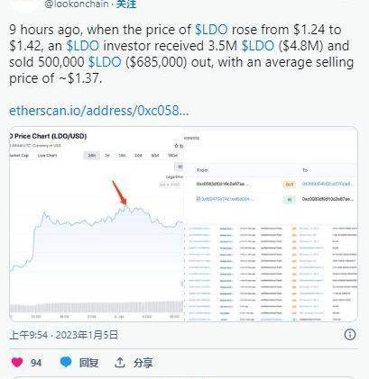 LidoFinance最近在市場上的上漲顯然伴隨著來自網絡上各種賬戶的購買力的強勁飆升。根據LookOnChain提供的鏈上數據,投資者獲得了價值近500萬美元的代幣。最近反彈背后的原因尚不清楚。1月1日,麗都底層代幣價格突然開始上行,表現穩健,跑贏大盤。資產流入的強勁飆升導致散戶投資者對資產的關注增加。