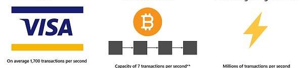 圖片:Visa每秒交易量與比特幣每秒鏈上交易量對比閃電網絡。