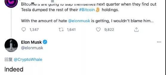 在這條推特下,馬斯克評論道:“確實”。這一言論被市場解讀為:馬斯克在暗示特斯拉可能已經全部拋售或部分賣出了其比特幣持倉。于是,比特幣又開啟暴跌模式,盤中一度重挫6000美元/枚,最低跌至42212美元,24小時內跌幅超過10%,其他加密貨幣也紛紛跟跌。
