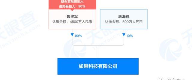 工商信息顯示,如果科技的注冊資本為5000萬人民幣,其中魏建軍出資4500萬,占股90%;唐海鋒出資500萬,占股10%。