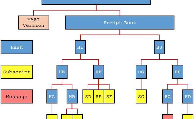 MAST(MerkleAbstractSyntaxTree)由抽象語法樹和Merkle樹發展而來,MAST背后的技術允許我們將一個腳本分割成互斥的子集,而Merkle樹允許我們在不披露整個腳本的情況下驗證單獨的腳本子集屬于一個完整的腳本。?