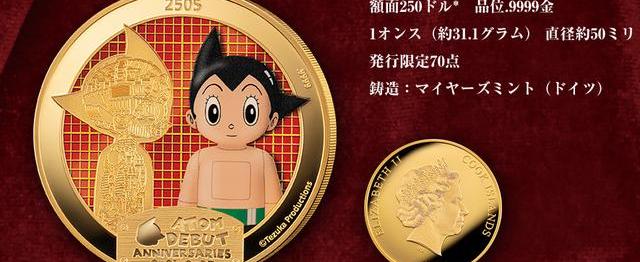 XRP/HKD-0.5%為紀念經典動漫《鐵腕阿童木》誕生70周年,官方日前公開全新紀念金幣,采用.9999頂級純金打造,全球限量70枚,一起來了解下。