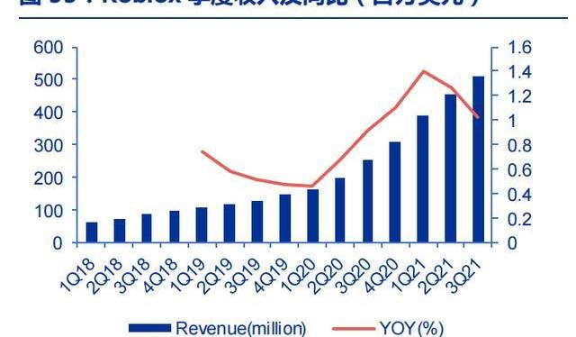 Roblox活躍用戶日均使用時長較長,用戶粘性突出。根據公司財報,Roblox全球用戶2021Q2消費總時長達到97.38億小時,活躍用戶日均使用時長達到2.5小時,用戶粘性強。由于疫情影響,Roblox平臺自2020Q2開始,用戶使用時長大幅增長,達到85.86億小時,2021Q2進一步提升至97.38億小時,同比增長13.4%,主要受益新市場的開拓。從人均日使用時長看,2020Q2在疫情拉動下,平均達到了2.9小時的峰值,之后逐步下降至2021Q2的2.5小時,用戶粘性突出。