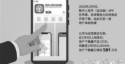 截至1月9日,華為應用市場的數字人民幣APP下載量已從上線首日的“不足萬次”猛增至“超580萬次”。另有多家平臺表示,數字人民幣APP上架后,日均新增推送數字人民幣錢包用戶數增超10倍。