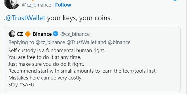 對中心化交易所的不信任似乎增加了對自托管錢包的興趣。幣安首席執行官趙長鵬對代幣母平臺TrustWallet的背書,也在推高TWT價格方面發揮了重要作用。
