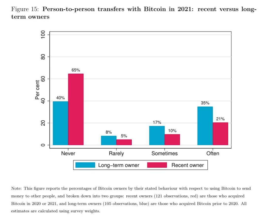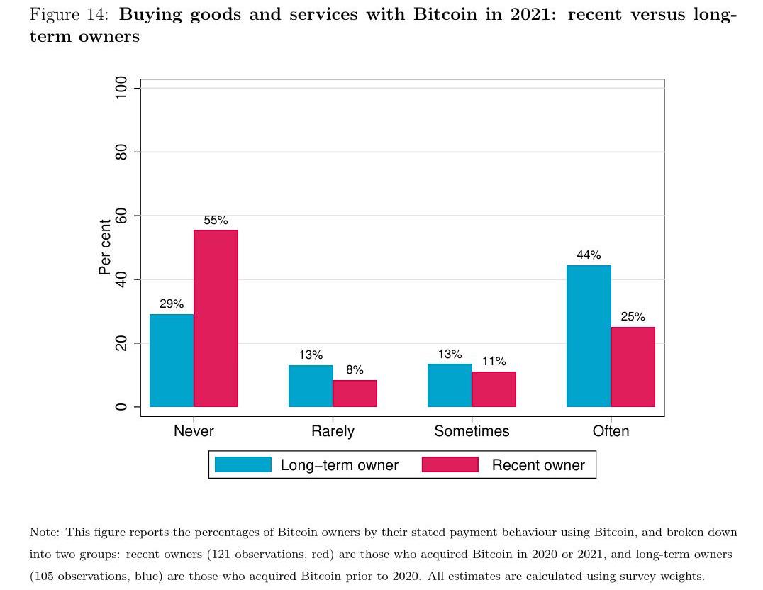圖142021年使用比特幣購買商品和服務:近期持有者與長期持有者