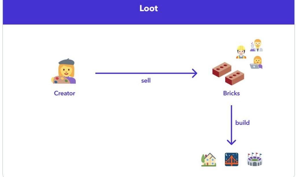 這些都是來自于「社區」自身的生長產物,創造者聚集了一批種子,這些種子開始自我繁衍,并創造更大規模的全新的項目,以類似于永動機的形式向前推進。這就是Loot與其他NFT項目不同的地方。tandavas.eth文章中所用的一個比喻非常恰當,大多數NFT項目是創作者“建好房子”,賣給想要這些“房子”的買家,并向這些買家空投“家具/裝飾物”,增加他們所持有的“房子”的價值,從而促使他們更愿意持有這些資產形成良性循環。而Loot則是給玩家們“磚瓦”,讓他們去搭建自己想要的“建筑”。這種玩法并不新鮮,但一旦萌芽,它也會成為最有生命力的項目之一。