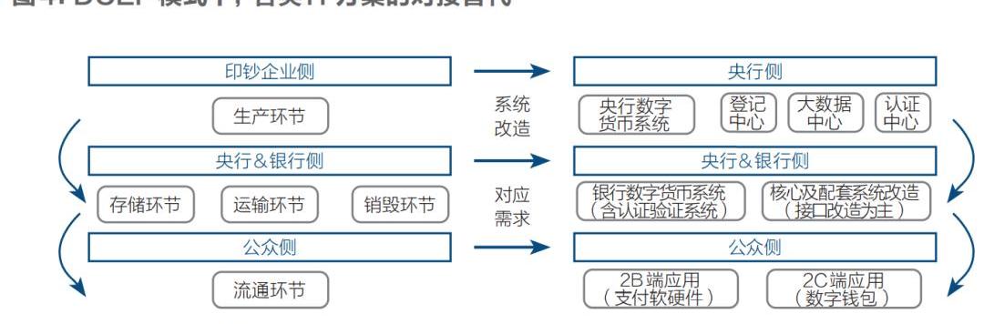 華西證券研報詳細列出了在e-CNY模式下,各類IT方案的對接替代。
