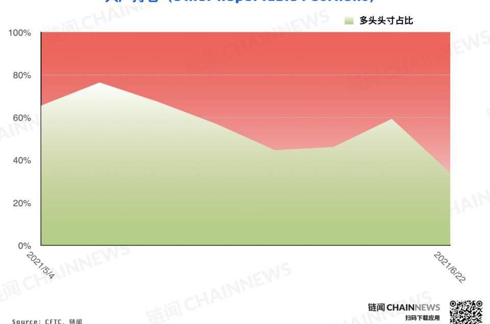 6月26日,CFTC公布了最新一期CME比特幣期貨周報,統計周期內比特幣大幅下跌,周期內自40000美元上方一路跌至29000美元以下,雖然周期內最后一個交易日行情先跌后反彈,但是并未能挽回整周跌近10000美元的弱勢狀況。在這種行情出現明顯單邊波動的大環境下,市場上的各類投資者究竟會作出順勢的反應還是會逆向「抄底」,將是本期周報的關鍵看點。
