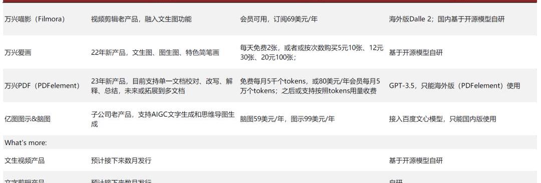 圖表27:萬興科技AIGC產品矩陣匯總