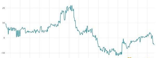 當做市商和套利市場過度收取費率以獲得價格上行或下行保護時,25%Delta偏斜率是一個可供參考的標志。在熊市中,期權投資者更多的押注于價格下跌,導致偏斜指標上升到8%以上。另一方面,在看漲的市場趨勢中,偏斜指標通常會在低于-8%的數值運行。