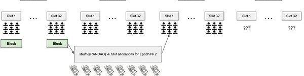 驗證者們通過第N個Epoch最后的隨機信標被分配到第N+2個Epoch的slot里