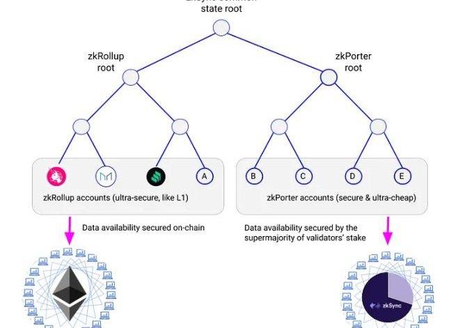 至于Volitions,它們是StarkWare團隊創造的一項創新,它們是ZK-rollup和validium之間的交叉。這就是說,只要有意愿,用戶就可以在鏈上和鏈下數據可用性之間進行選擇。這為應用程序提供了TPS性能驗證級別的選項,同時仍可與非托管ZK-rollup技術互操作。zkSync的新突破性zkPorter機制就是一個值得關注的volition系統。