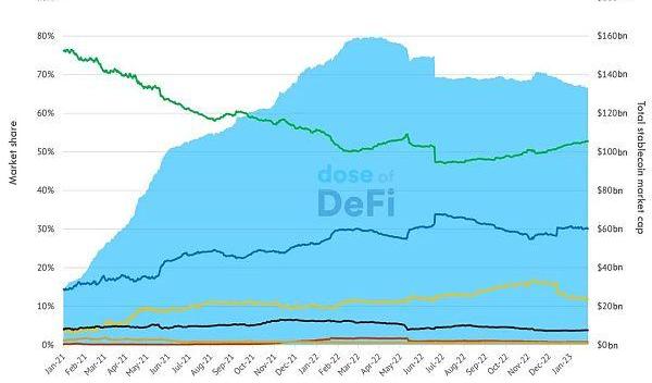 Tether是穩定幣里面的OG,其發展根源可以追溯到2015年的比特幣側鏈Omnichain。到目前為止,它仍然是市場領導者之一,但領先優勢已經縮小,從75%的市場份額降至略高于50%。與USDC和BUSD不同,可能是沒有努力US監管機構打好關系。然而,鑒于其對美元銀行系統的核心依賴,它別無選擇,只能遵守他們的規則。