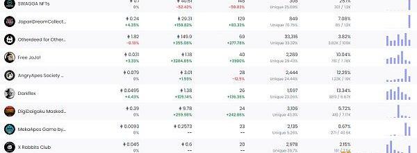 24小時NFT交易量、交易量前十項目數據來源:Coinmarketcap