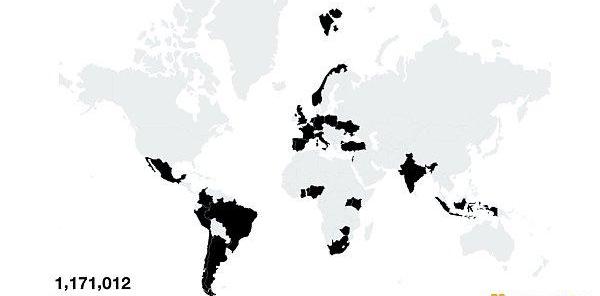 截止目前,Worldcoin官網顯示已有117萬用戶,分布如下: