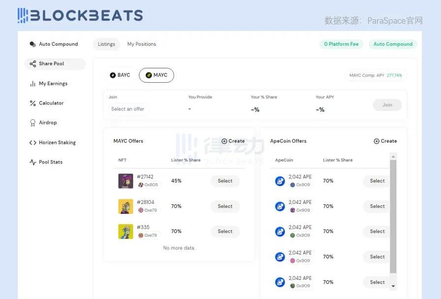 然而,ParaSpace雖然與BendDAO幾乎同期推出ApeCoin質押業務,有著「一鍵配置」的便捷操作和「點對池」即時配對的優點,卻在開始就落了下風。