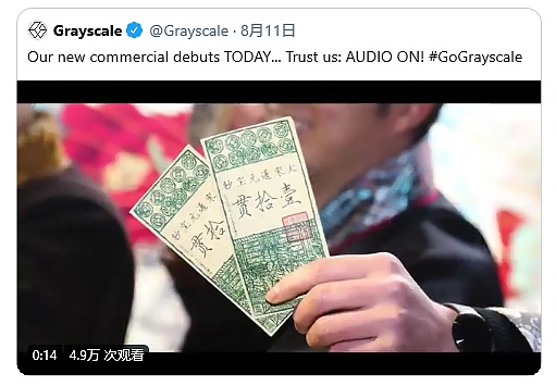 ? ▲ 灰度的廣告視頻截圖 ? 來源:Twitter