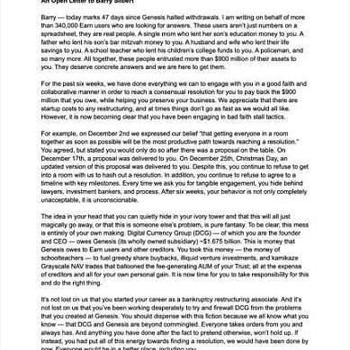 Silbert回應稱:「DCG沒有從Genesis借入16.75億美元。DCG從未延期向Genesis支付利息,并且所有未償還貸款都是最新的;下一次貸款到期日是2023年5月,DCG于12月29日向Genesis和您的顧問提交了一份提案,但尚未收到任何回復」。Silbert沒有提供更多細節。