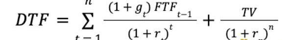 其中FTFt代表第t年的自由代幣流量,rt代表第t年的折現系數,TV代表最終價值。