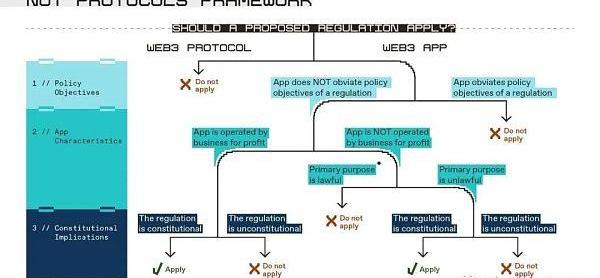 在過去幾十年互聯網的爆炸性增長中,對應用程序而不是協議的監管很符合公眾利益。雖然web3技術的傳播給監管互聯網的挑戰增加了一層復雜性,但web3應用程序的監管框架并不需要在協議層面上解決非法活動。我們并沒有因為電子郵件促進非法活動而對SMTP進行監管。但是,關于web3監管框架的建議必須能夠通過減少非法活動的風險來實現政策目標,提供強有力的消費者保護,并消除與政策目標背道而馳的激勵措施--這可以在應用層面最有效地完成。