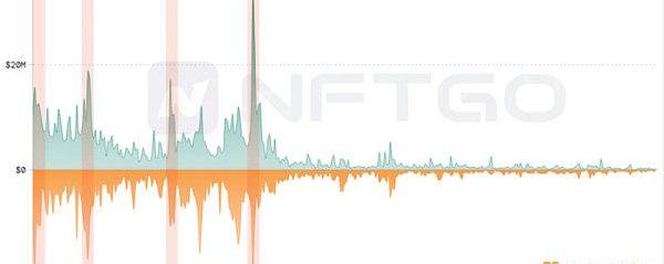 其中在?5?月?1?日左右,巨鯨群體拋售了近?2000?萬的?NFT?資產,隨后?NFT?市場也進入了漫長的熊市,與其說他們提前于市場行動,倒不如說正是他們的行為影響了市場趨勢,將市場傳導的順序變成“巨鯨操作——散戶操作——引發行情”。