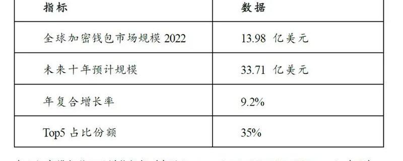從收入規模上來看,根據?futuremarketinsight?的研究指出,?2022年全球加密錢包市場總收入約為13.98?億美元,預計未來十年內將突破?33.71億美元,年復合增長率達?9.2%?,將呈現高速增長態勢。當然頭部錢包會越來越強,將會占到整個市場份額的?35%?左右。
