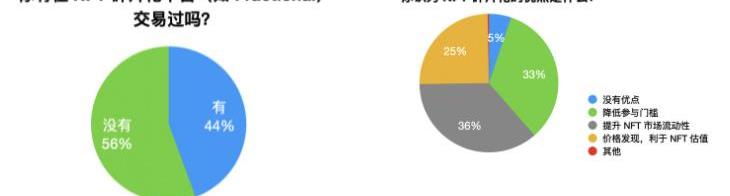在參與此次調查問卷的人群中,56%的用戶有過在NFT碎片化交易過的體驗。用戶認為,NFT碎片化的優點前三名分別是:提升市場流動性、降低參與門檻以及價格發現、利于NFT估值。