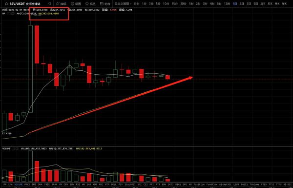 從技術面看,BSV近期漲幅過大,目前持續進行技術形態修復,目前30日均線價格已上移至251美元,成交額持續縮減,后期上攻則需成交量的配合,需要注意的是BSV控盤較強,需防范主力假摔的可能。短期支撐位:250美元 短期壓力位:300美元。