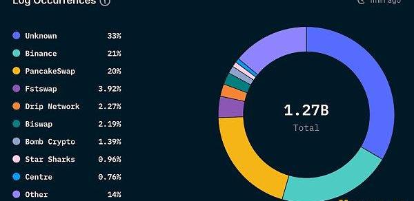 如前所述,PancakeSwap繼續主導幣安鏈上主要使用頻率,占鏈上所有交易的20%。第二季度其他值得一提的還有Era7、SecondLive、MOBOX和TinyWorld,本季度流行的Play-to-Earn游戲。此外,33%的「未知」標簽是指Nansen所有未標記鏈上實體的總和,而不是任何單個未知實體。