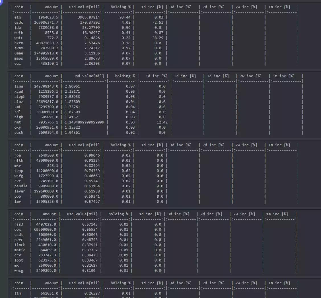 這個工具監控27條區鏈上的10000多個金庫,并允許用戶選取不同標簽進行篩選展示,比如協議、區塊鏈、收益率或TVL等。