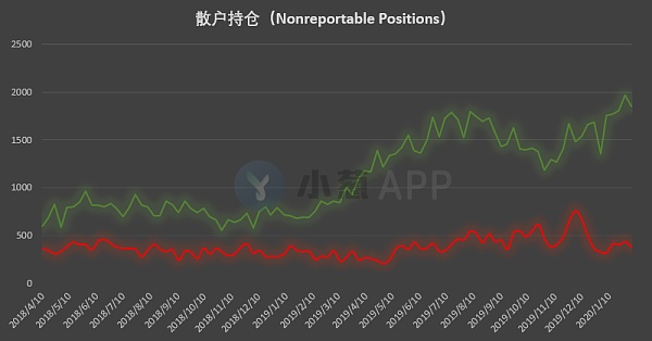 散戶持倉方面,多方持倉自1967張回落至1851張,空方持倉自434張同步回落至380張。散戶持倉的多頭頭寸自歷史高點回落,雖然多空雙向在最新統計周期中出現雙降變化,但是這類賬戶的凈多優勢過于明顯,所以散戶對于后市的強烈看漲態度實際上并沒有發生明顯變化,散戶投資者仍然是市場多頭最堅定的擁躉。