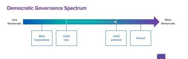更重要的是,Web3組織不應止步于此。與傳統的治理形式相比,Web3治理可以走得更遠、更快。在現實世界中,民主實驗是緩慢的,比如要弄清楚一種憲法形式是否比另一種更好可能需要花費幾十年甚至幾個世紀的時間。但在Web3中,協議可以不斷實驗來開發和測試新的表現形式,從而推動治理周期變得更短。