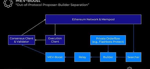 但是父母輩和常見的驗證者并不知道如何提取我們討論的MEV,Flashbots為此提供了替代方案,即MEV-boost將嵌入你的共識客戶端,允許你外包特定的區塊構建。重要的是,此時你仍可以選擇使用自己的執行客戶端作為后備。