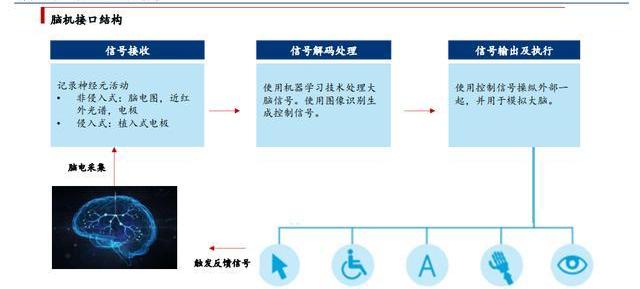 腦機接口1976年由加州大學洛杉磯分校的雅克·維達爾(JacquesJ.Vidal)提出。一個完整的腦機接口過程包括信號采集、信息解碼處理、信號輸出/執行、反饋四個步驟實現。