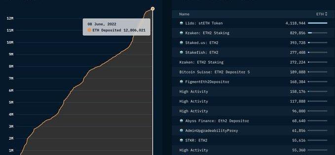 5.1億美元的ETH被鎖定在ETH2.0質押合約中,直到合并后才能拿出。