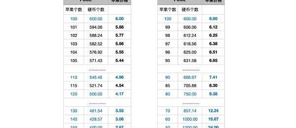 還是拿之前的蘋果價格舉例,我們先設定一個流動性池,它包括兩個部分:金錢池和蘋果池。我們把600個一元硬幣和100個蘋果放進來,每個定義初始價格是6元,并且做一個重要規定: