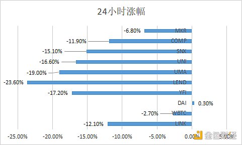 市值前十幣種漲跌幅,金色財經制圖,數據來源CoinGecko