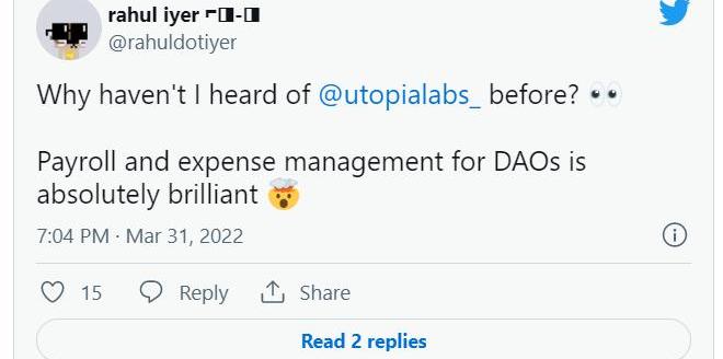 如果還不清楚的話,我們選擇了UtopiaLabs,因為該團隊反應迅速,符合我們未來的計劃,并且有一些最大的DAO正在與他們進行實驗。我對這個團隊充滿了愛,很高興看到他們繼續建立的東西。