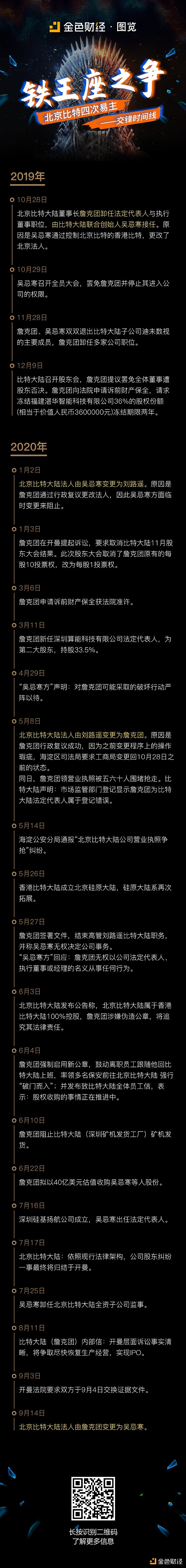 經金色財經查證,9月14日核準后,國家企業信用信息公示系統顯示北京比特大陸科技有限公司法人再次更換,由詹克團變更為吳忌寒。兩位創始人出現爭執已久,來龍去脈如何?一圖了解“掌門人”正面交鋒時刻!