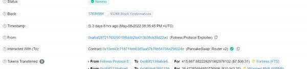 北京時間2022年5月9日,知道創宇區塊鏈安全實驗室監測到BSC鏈上借貸協議FortressProtocol因預言機問題被攻擊,這是最近實驗室檢測到的第三起預言機攻擊事件,損失包括1,048枚ETH和400,000枚DAI,共計約300W美元,目前已使用AnySwap和Celer跨鏈到以太坊利用Tornado進行混幣。