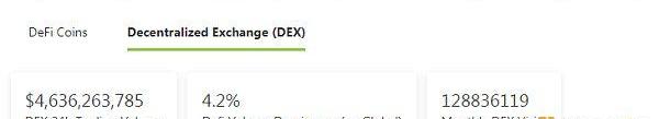 2.過去24小時去中心化交易所的交易量:46.36億美元