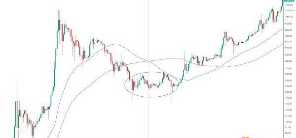如圖所示,BTC未能突破站穩周線50均線,價格再次跌落下來,前期已分析過該線的關鍵作用,后面若不能站回的話,中期調整恐將延續,目前BTC處于周線50線和100線之間上下震蕩,50線已經向下拐頭形成壓制,100線還繼續保持向上姿態,這種狀態后面兩線有交叉的機會,通過歷史可以看到,周線50線死叉100線,往往意味著BTC已經處于這一輪大調整的底部區域,對于目前兩線想要死叉可能還需要數月時間,觀察后續BTC能否重新站回,否則就要做好再次回落探底的準備。